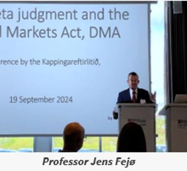 Professor Jens Fejø had a presentation regarding the Meta-judgement (The company behind Facebook and Instagram), where the collection and use of data was challenged successfully as a breach of EU law. A complication regarding this judgement is whether other parts of the world, such as the United States, will be as stringent in regulating giant tech companies, such as Meta, which is cause for uncertainty regarding the future of collection and use of personal data. The presentation explains the significance of the judgement especially regarding Competition authorities worldwide. The presentation is available here.